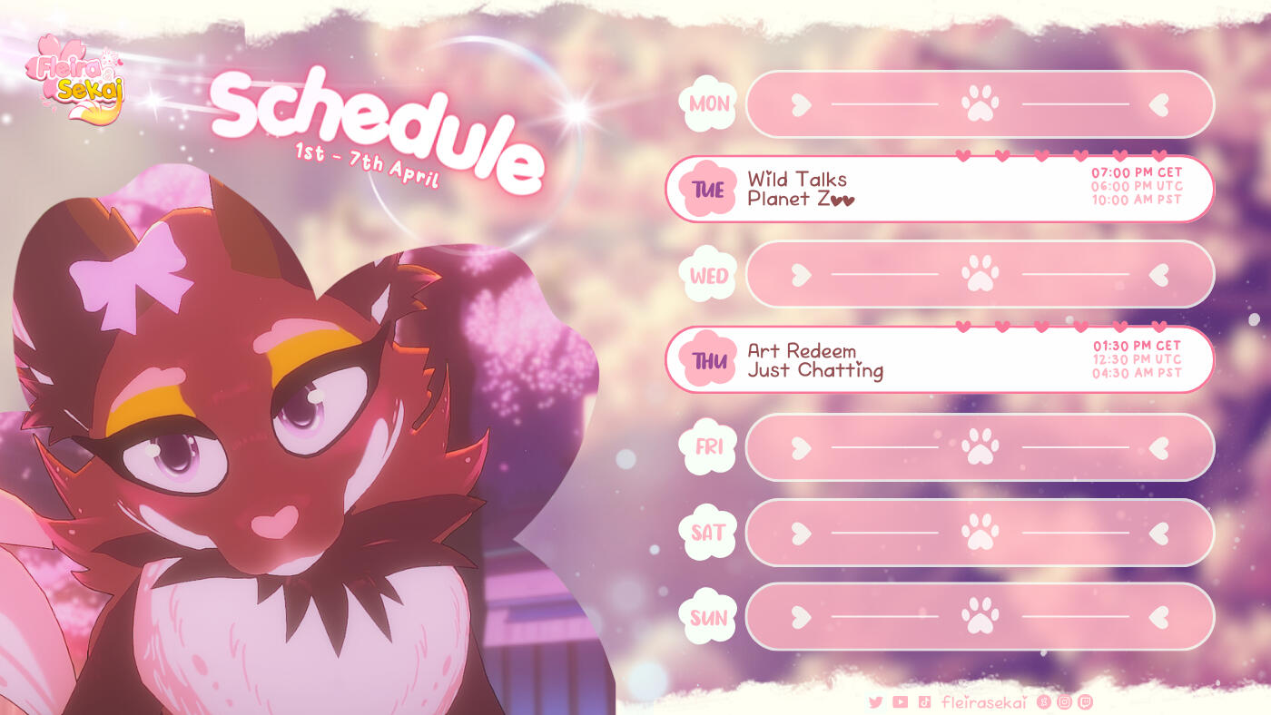 Hello, I'm Chiara but you can call me Fleira. I'm an italian girl who loves bubble tea, sakura flowers and animals in general.I'm specialized in drawing animals in cartoon style, that's why I'm a full time digital artist for the pet industry and the furry fandom since 2016, with some skills in animation and graphics.Due to my background as Vet-Technician, my second aim is to teach people to understand and respect all living beings through my art and live streams.If you want to know something more about me, you can find me on Twitch as a variety streamer with my V-Tuber, Sekai.